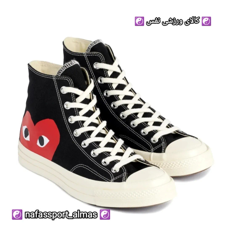 کفش آل استار کانورس در رنگبندی مشکی و سفید موجود است. مناسب برای استفاده روزمره و ورزشی.