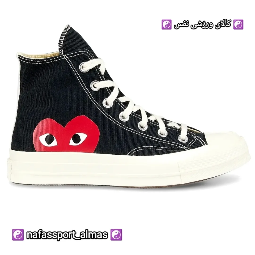 کفش آل استار کانورس در رنگبندی مشکی و سفید موجود است. مناسب برای استفاده روزمره و ورزشی.