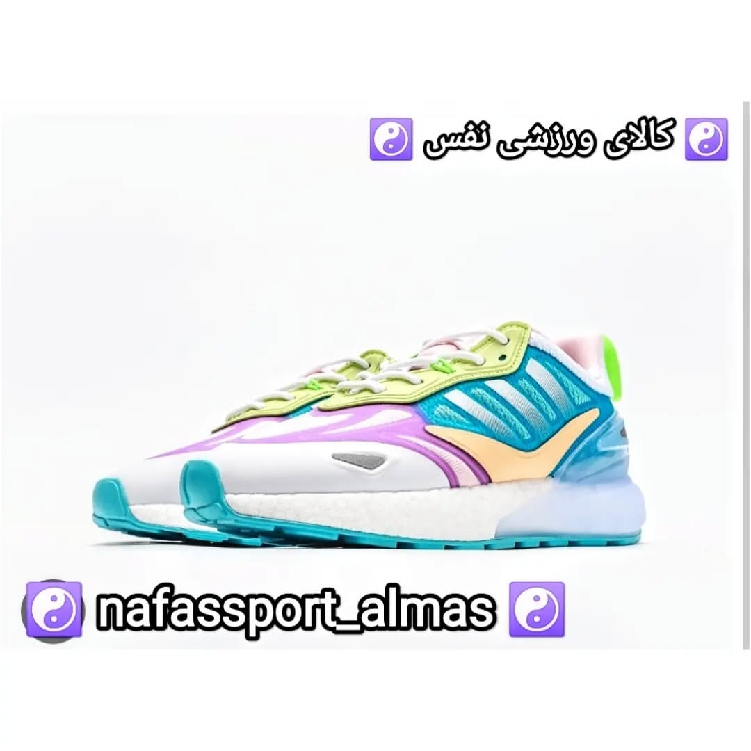 کفش رانینگ آدیداس zx رنگبندی : مشکی طوسی سفید و سفید بنفش سبز جنس زیره : U . P . A کشور سازنده : ایران