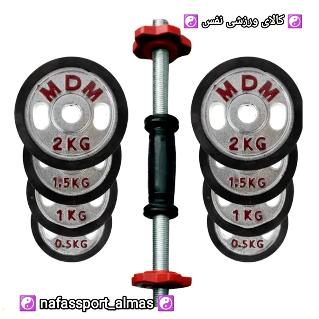 دمبل متغیر قابل تنظیم از 0.5 تا 10کیلوگرم دارای وزنه های 0.5 - 1 - 1.5 - 2 کیلو گرم قیمت وزنه ها به روز میباشد برای استعلام قیمت تماس بگیرید