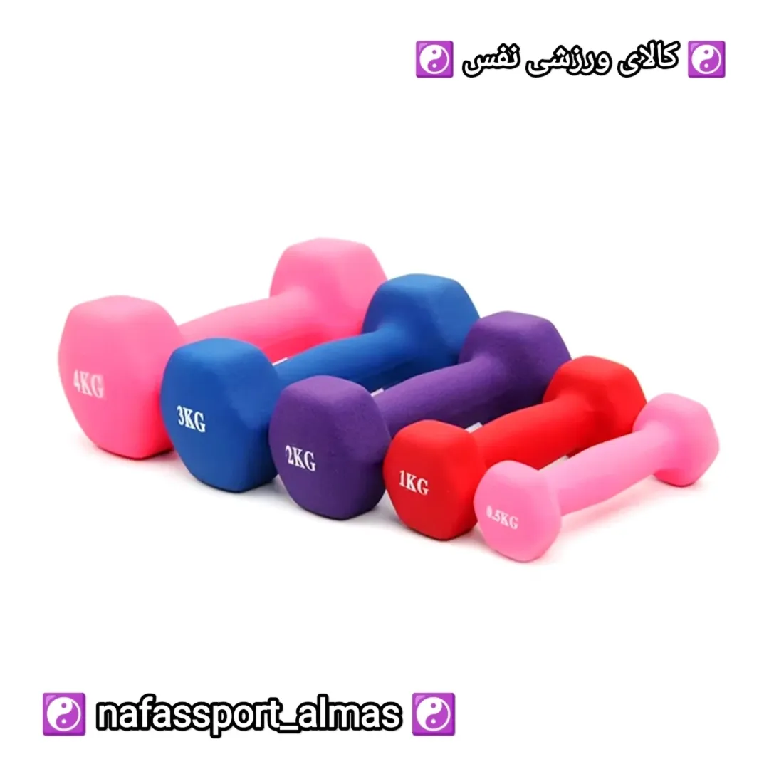 دمبلهای روکش دار مخصوص بانوان وزنهای 1 تا 10 کیلوگرم رنگبندی : مشکی - قرمز - صورتی - بنفش - سورمه ای قیمت وزنه ها به روز می باشد برای استعلام قیمت تماس بگیرید
